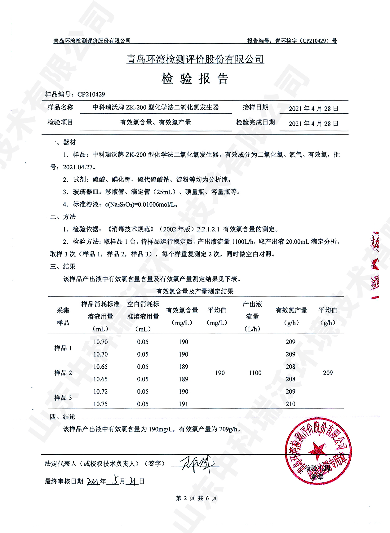 醫(yī)療污水處理設(shè)備檢測(cè)報(bào)告~二氧化氯消毒